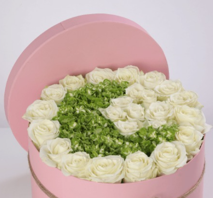 Elevate your gifting experience with The Green Moon Flowers Box. This sophisticated arrangement features 22 pristine white roses complemented by a single lush hydrangea, elegantly presented in a premium pink gift box. The careful balance of floral elements creates a refined aesthetic that conveys both luxury and thoughtfulness for any special occasion.