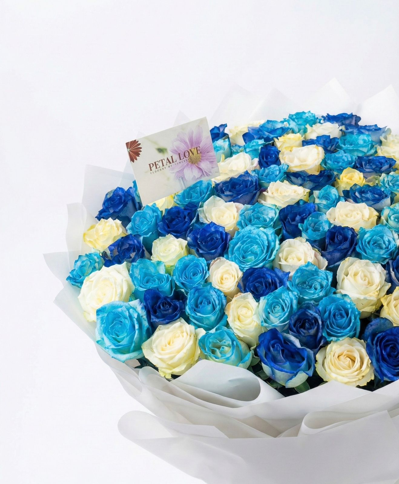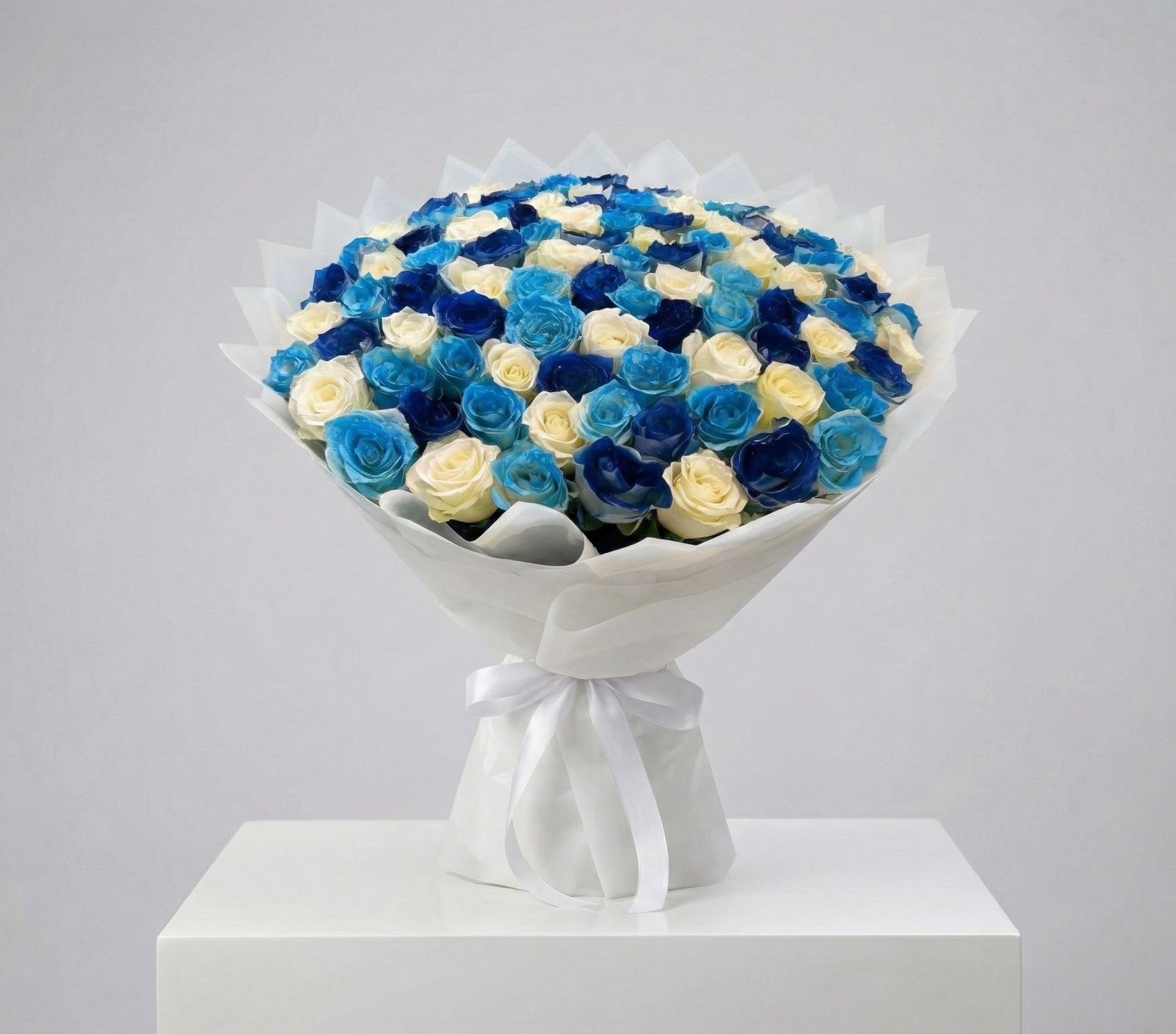Royal Blue & Ivory 100 Roses Luxury Bouquet